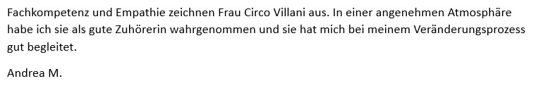 Name und Anschrift: Coaching Villani, Claudia Circo Villani, Ellinghausen 3, 33154 Salzkotten