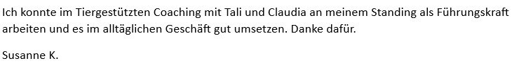 - Tiergestütztes Coaching.